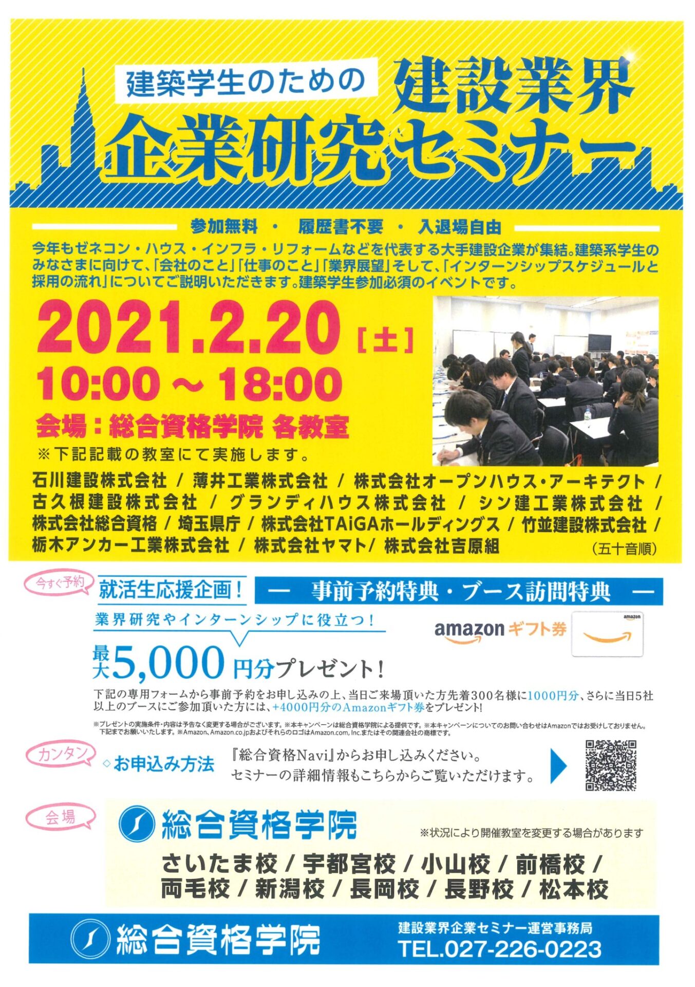 建設系学生のための『建設業界研究セミナー』開催のお知らせ